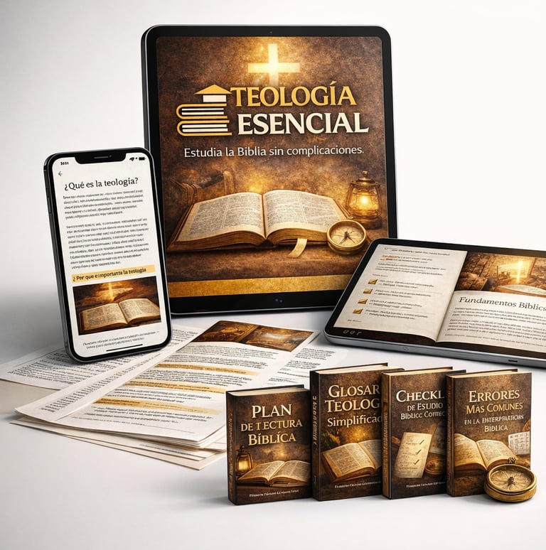 Recibirás un ebook principal + materiales complementarios exclusivos, diseñados para ayudarte a comprender la teología cristiana de forma clara, bíblica y práctica, sin complicaciones académicas.